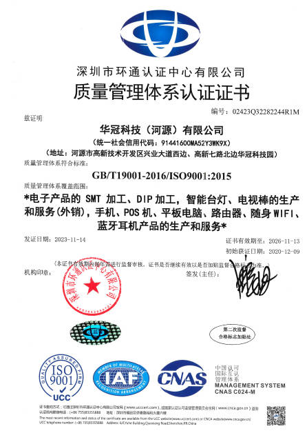 華冠ISO9001質(zhì)量管理體系認證證書(中文)